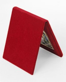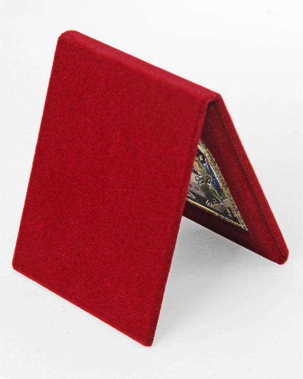 Размер складня: 7 х 9 см, толщина - 1 см; размер иконы: 4,6 х 6,7 см.