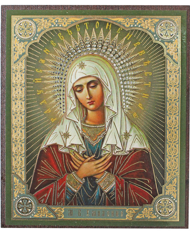 Икона на МДФ, выполненная в технике цветная полиграфия с золотым тиснением.
