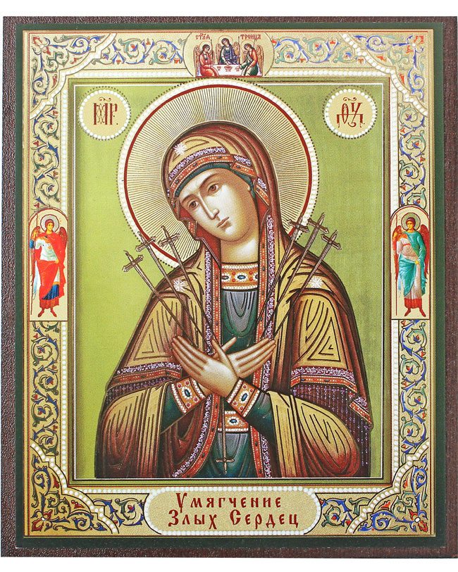 Умягчение злых сердец икона Божией Матери на МДФ (10,3 х 12,3 см)