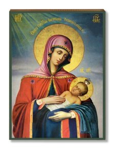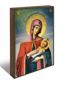 Икона изготовлена из массива липовой доски. Уникальный способ печати передает все цвета подлинной иконы. Печать выполнена прямым нанесением красок на специально подготовленную поверхность доски. Краска имеет высокую стойкость к выцветанию и не боится влаги. Подготовка и обработка иконной доски произведены православными мастерами. На обратной стороне имеется отверстие для крепления к стене. Икона находится в коробочке.