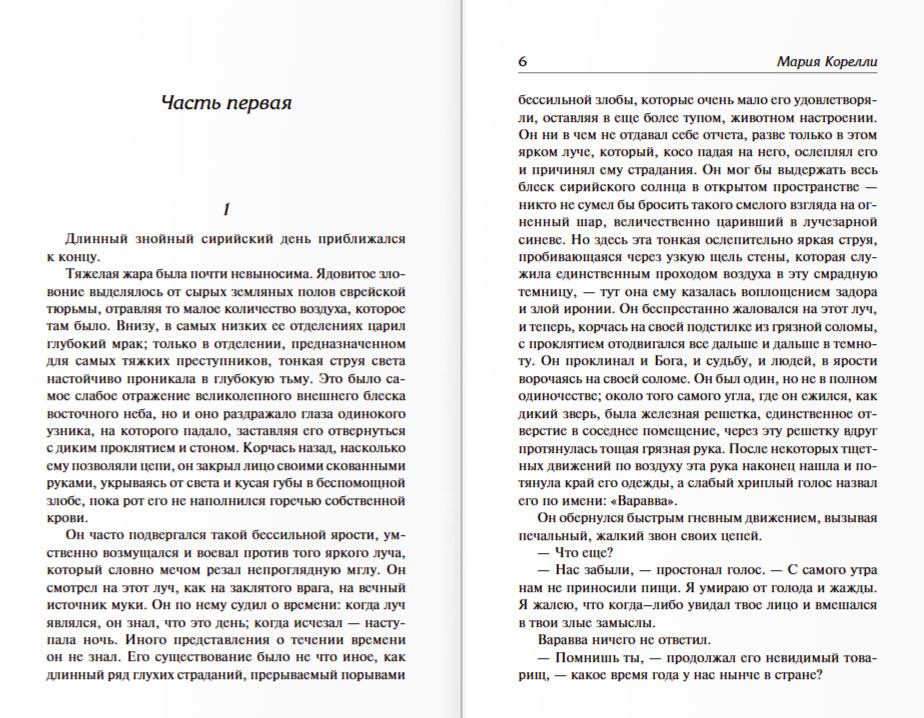 По некоторым данным Мария Корелли отрицала католицизм, однако ей были не чужды рассуждения о верности евангельских истин. В книге «Варавва», имеющей подзаголовок, чрезвычайно точно отражающий её суть — «Повесть времён Христа», она повествует о разбойнике Варавве, вместо которого был осуждён Иисус Христос на распятие. Трагедия на глазах превращается в драму, возвещающую спасение человечеству. Император Николай II распорядился перевести эту книгу с английского языка. Также заслуживает внимания книга «История детской души», показывающая, как важно детям давать знания о Боге, учить их любить Господа и ближних.