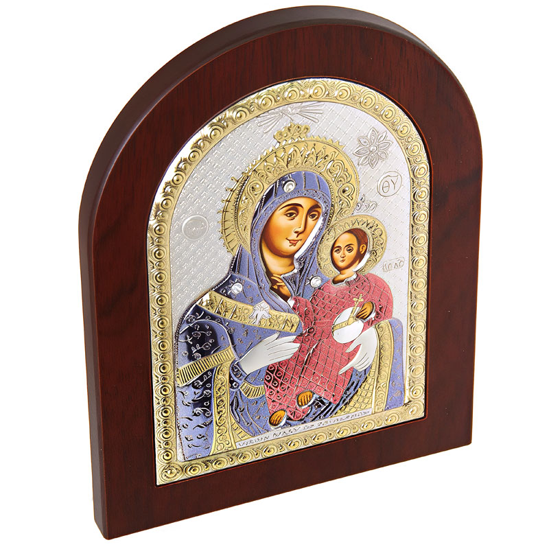 Икона Божией Матери «Вифлеемская», выполнена в стиле греческого письма, ручной работы. Изготовлена с использованием метода шелкографии, а также трафаретной объемной печати. Металлическая пластина состоит из листа алюминия (он получает поверхностную обработку с помощью PVD технологии нанесения тонкого слоя серебра и золота) и покрыта лаком. На обратной стороне иконы имеется подставка и сертификат о подлинности письма.