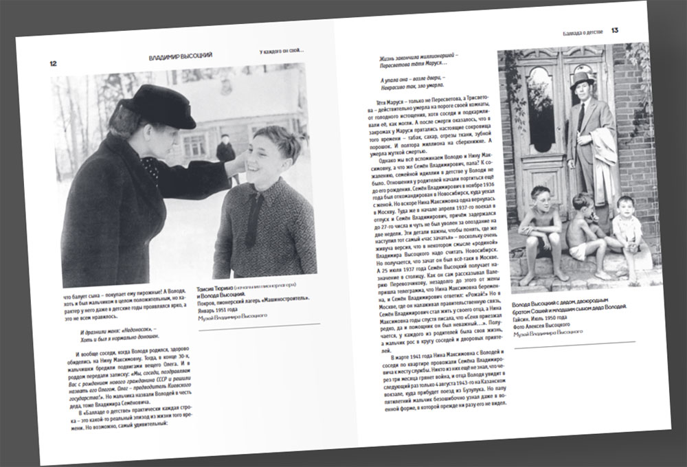 Альбом проиллюстрирован редкими фотографиями из архивов семьи Высоцкого, Государственного Музея Владимира Высоцкого, коллекционеров и поклонников творчества поэта. Работая над этими историями, автор сам удивлялся, сколько нового он узнал о Владимире Высоцком: как много неожиданного открылось в его творчестве и биографии.