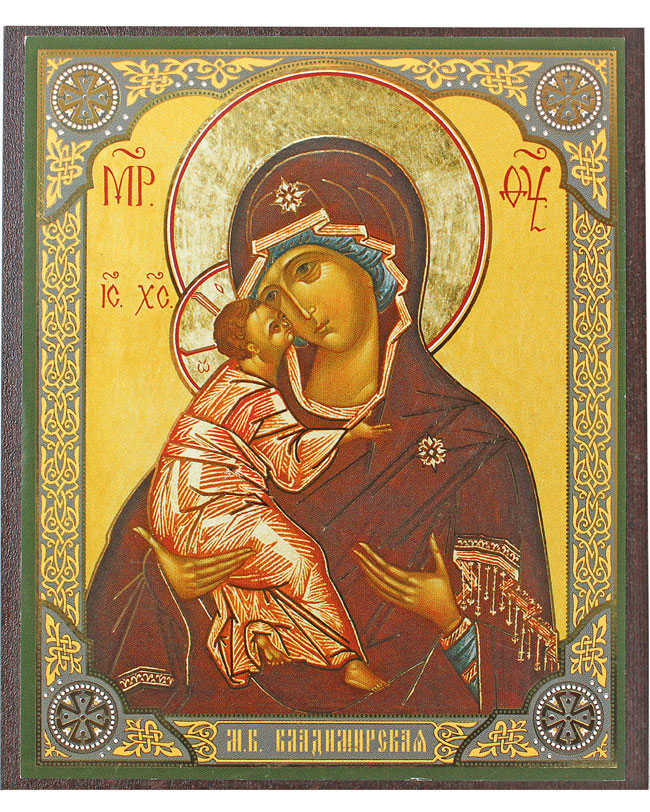 Икона на МДФ, выполненная в технике цветная полиграфия с золотым тиснением.