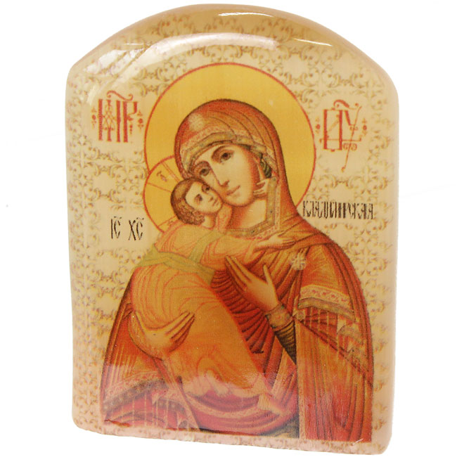 Владимирская, икона настольная из селенита (45 х 30 х 65 мм, 65 г)