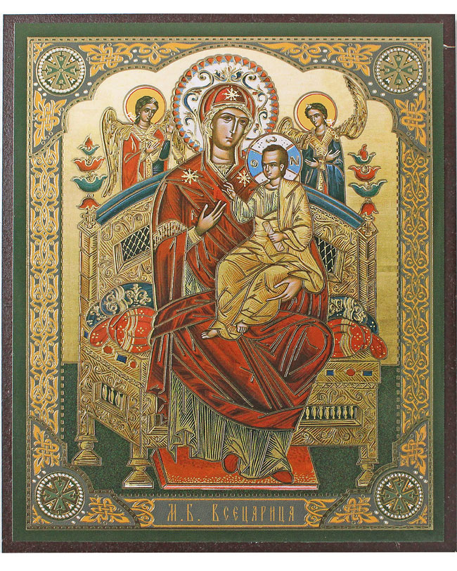Всецарица икона Божией Матери на МДФ (10,3 х 12,3 см)