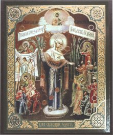 Икона на МДФ, выполненная в технике цветная полиграфия с золотым тиснением.