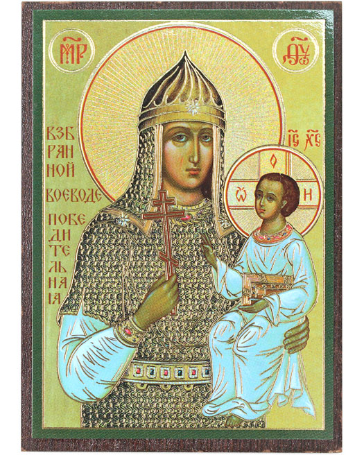 Взбранной Воеводе Победительная икона на МДФ (6,3 х 9 см)