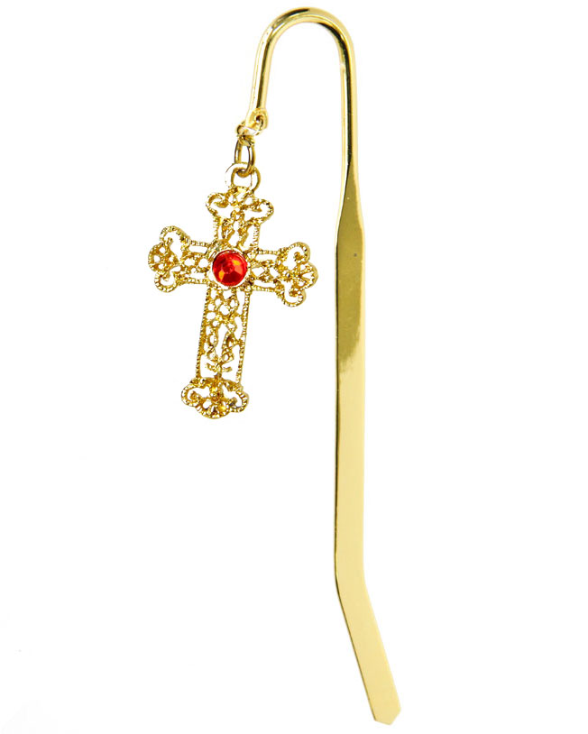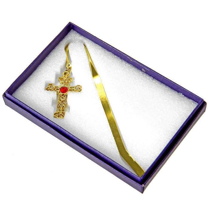 Металлическая закладка для книг с филигранью с крестом на цепочке в классическом стиле XIX века, в подарочной упаковке.