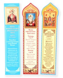 Закладки не очень удобные, не для каждой книги подойдут. Гнутся, так как длинные. Красивые конечно, печать отличная, образы маленькие, но четкие, надписи видны, есть молитвы. Взяла из-за редких образов, которые в ламинате трудно найти.