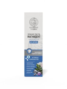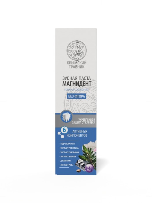 Зубная паста «Магнидент» — зубная паста без фтора для ежедневного ухода за полостью рта. Укрепляет эмаль, заботится о дёснах и поддерживает естественный баланс микрофлоры за счёт минерального и растительного комплекса.