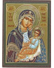 Целительница икона Божией Матери на МДФ (4 х 6 см)