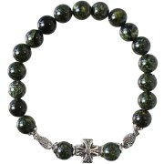 Браслет 20 зерен из камня агат моховый (с крестом и...