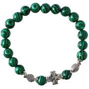 Браслет 20 зерен из камня малахит (с крестом и...