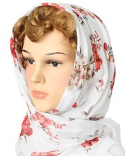Шарф белый с цветочным узором и блестками (хлопок,...